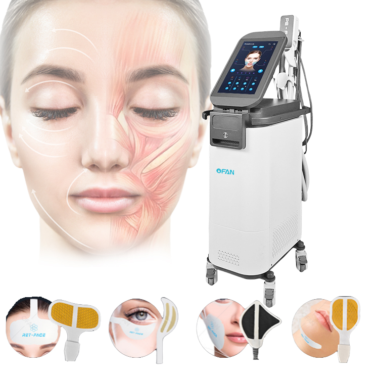 Is a non-invasive treatment that utilizes a combination of HI-EMS (high-intensity facial electrical stimulation) and radiofrequency technology to improve facial muscle density and stimulate collagen and elastin production. Halaas. "As of right now, it's the only device that can address and reverse the two main causes of aging—loss of facial muscle tone and loss of collagen." Hife-Facer combines RF (Radiofrequency) and HI-EMS (High-Intensity Facial Electrical Stimulation) technology to tighten skin and tone facial muscles. Applicators are placed on the forehead and each cheek. These applicators use RF to tighten skin and HI-EMS to specifically stimulate and tone the elevator muscles in each area of the face. The elevators of the face include the frontalis (upper forehead) and the zygomaticus major and minor (cheek) muscles. The combination of the technologies increases the bulk of these muscles, lifting the facial skin, while also decreasing wrinkles and contouring the face.